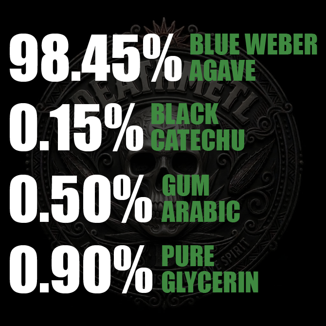 Deathmetl isn't just a drink; it's a textural revolution.At the heart of our blend is Blue Weber Agave, harvested at peak ripeness to ensure that unmistakable earthy, citrus-forward backbone shines through. To find our "darkness," we looked to Black Catechu, which is a natural herbal extract derived from the acacia tree (Acacia catechu), native to Southeast Asia. It provides a deep, structural "spine" and a hauntingly beautiful obsidian hue.